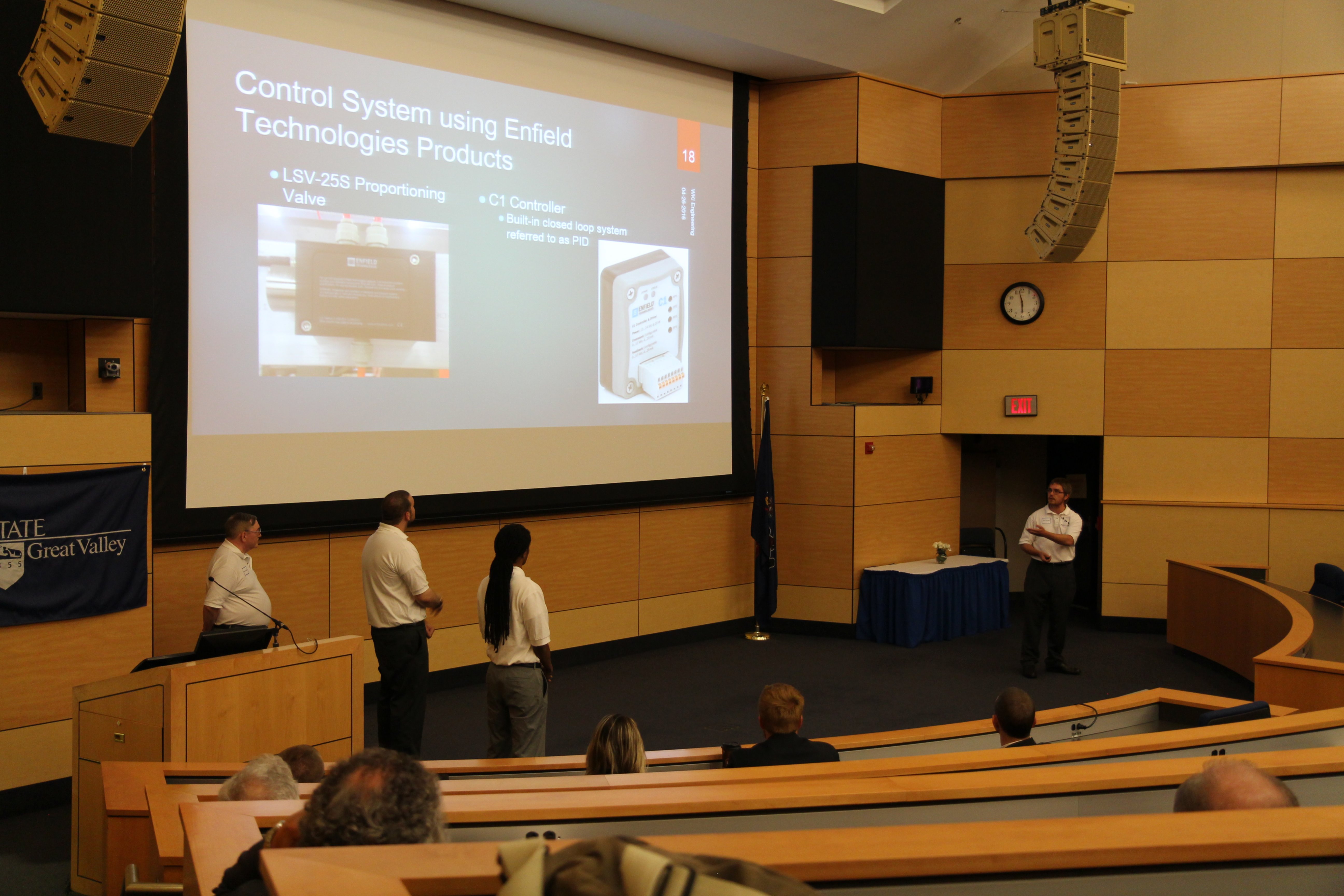 莫尔文,Pa。 周三晚上,在位于莫尔文的十大足彩平台大峡谷校区举行的首届设计博览会上,8名十大足彩平台工程系的本科生向50位嘉宾展示了他们的高级顶点项目。 这是十大足彩平台第一批获得多学科工程设计专业工程学士学位的学生,这要归功于十大足彩平台分校、白兰地酒分校和大峡谷分校之间的合作。