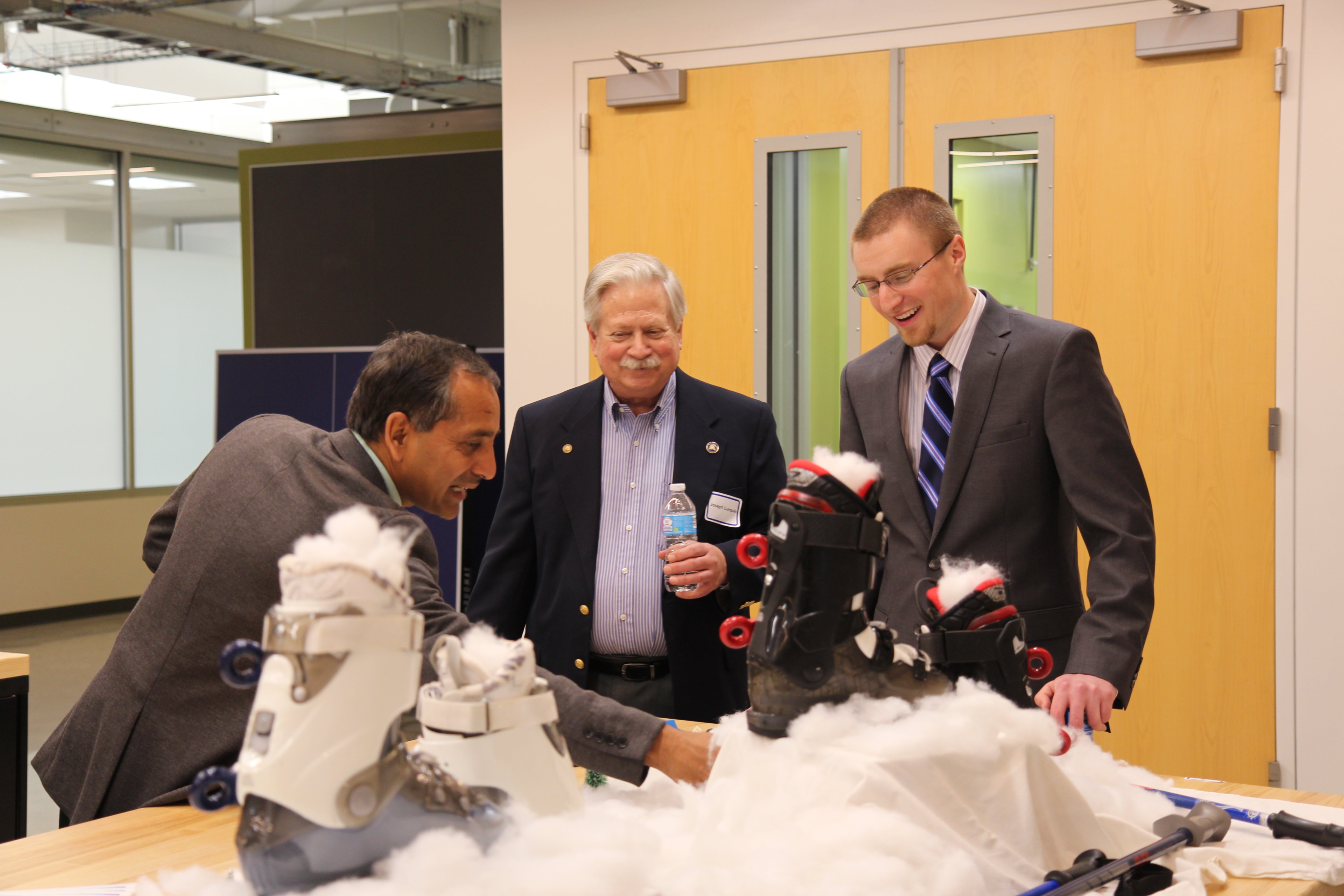 十大足彩平台谷地分校校长詹姆斯·内梅斯和工程学教授凯瑟琳·贾布洛科和道格拉斯·舒默致开幕词,并概述了这一独特的学位项目。 接下来是两名学生的演讲。 两个团队的任务是在当地行业赞助商的支持下创造一种新产品。 由埃克斯顿的欧米茄设计公司赞助的WKI团队创造了一种产品,可以精确地提供0.5到300磅的指定力,而SEG团队则创造了一种工具,供滑雪者打开和关闭滑雪靴扣,而无需脱下他或她的连指手套 这个概念的灵感来自于他们的赞助商,Bird with Fry LLC。演讲结束后,客人们欣赏了来自大三和大四班级的机器人和软件展示,包括为Horsham Township定制的检测机器人,它可以在数百英尺外识别雨水排水管堵塞。